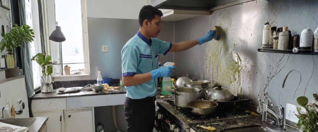 - Backsplash & Cooker Hood: Lapisan lemak yang menghitam jika tidak segera ditangani akan merusak tekstur material.